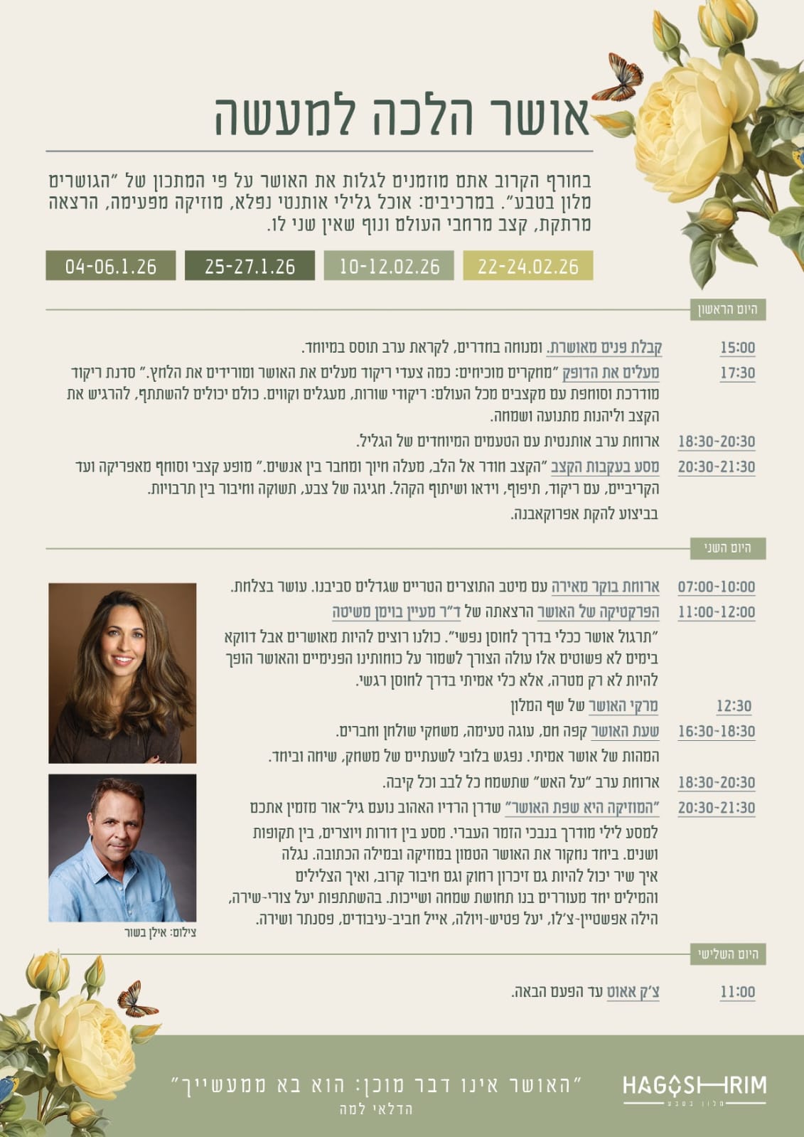 אירועי התרבות ב"הגושרים מלון בטבע" 22-24/2 בואו להינות >>