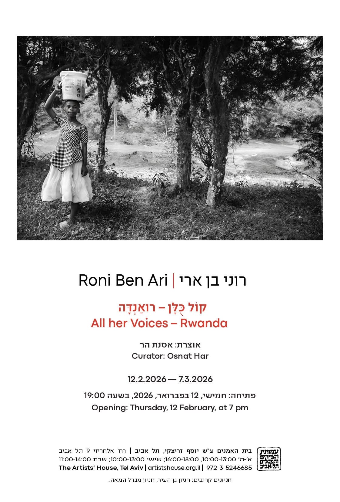 בתערוכה שלפנינו, רוני בן ארי מציגה מבט דוקומנטרי רגיש ומעמיק אל תוך חברה הנמצאת בתהליך מרהיב של ריפוי והעצמה. הפרויקט נולד מתוך נקודת מוצא פוליטית-חברתית מרתקת: רואנדה היא מהמדינות המובילות בעולם בייצוג נשי בשלטון, כאשר 60% משרי הממשלה הן נשים. בן ארי יוצאת לבחון כיצד העובדה הזו אינה נותרת כסיסמה בלבד, אלא יורדת אל השטח בערים ובכפרים כדי לראות מקרוב איך אישה שעומדת למען עצמה, אולי מבלי לדעת זאת, מבלי להצהיר על כך, היא עומדת למען כל הנשים.